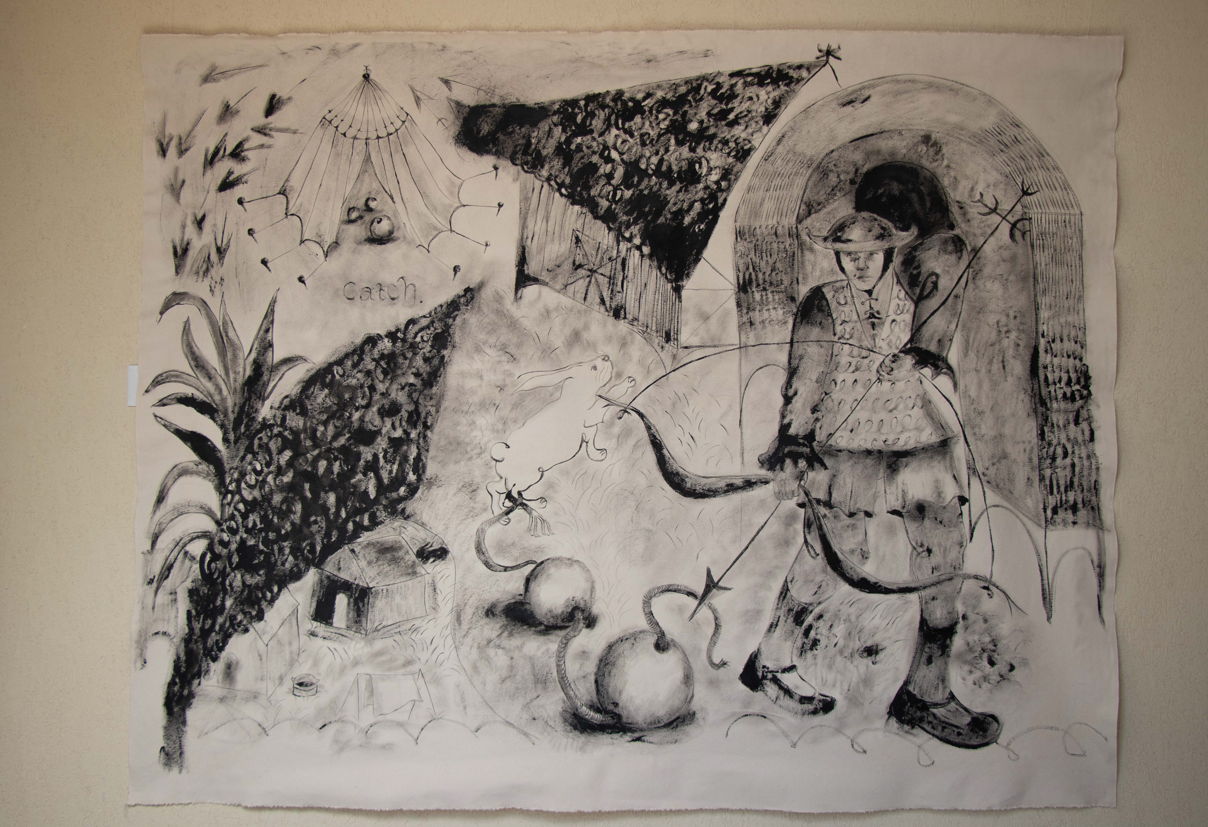 "Smoking", 80/40cm, dry acrylic, 2024 / Susoio gallery, Haifa.